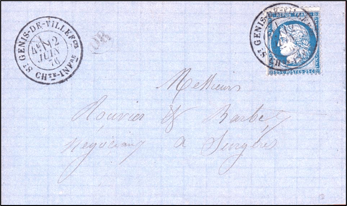 Saint Genis de Villefranche 12 juin 1876 – type 18 erroné