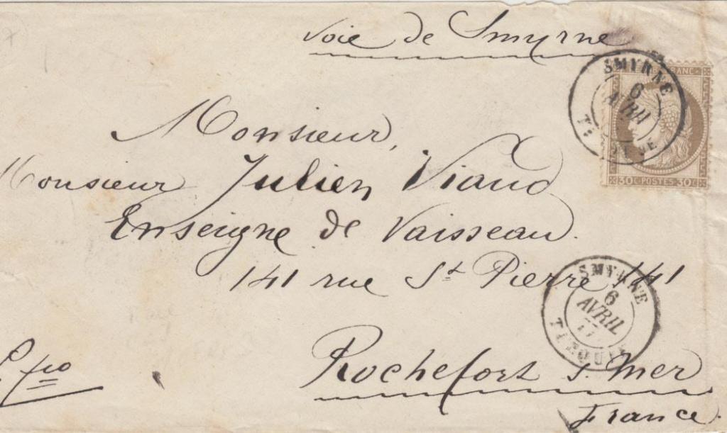1877 Enveloppe de Smyrne destinée à Julien Viaud