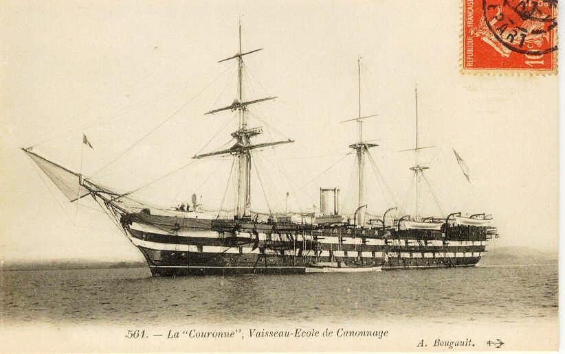 En 1876 Pierre Loti est à bord de la Couronne. Ce navire faisait partie de la flotte de Napoléon III lors de sa visite en Algérie en 1865. C’était un trois-mâts possédant 1 620 m2 de voilure mesurant 80 mètres de long pour 16,7 mètres de large. C’est la première frégate française dont la coque est entièrement en fer, elle fût construite à Lorient.