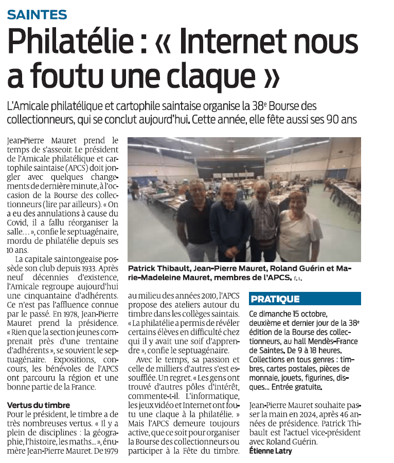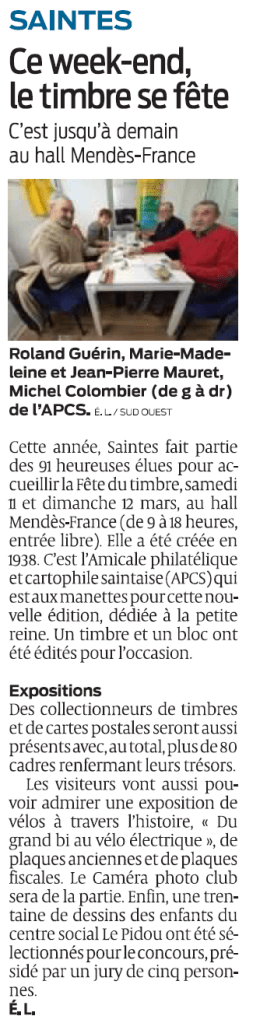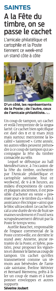 la fête du timbre 2023 avec 2 articles Sud-Ouest 11 et 12 mars: