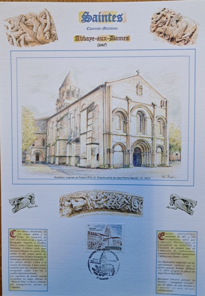 bloc feuillet du timbre de Saintes, illustration Roland Irolla, vendu 5€ (remise en main propre), ou envoi par courrier (rajouter 2€50). ! presque épuisé !